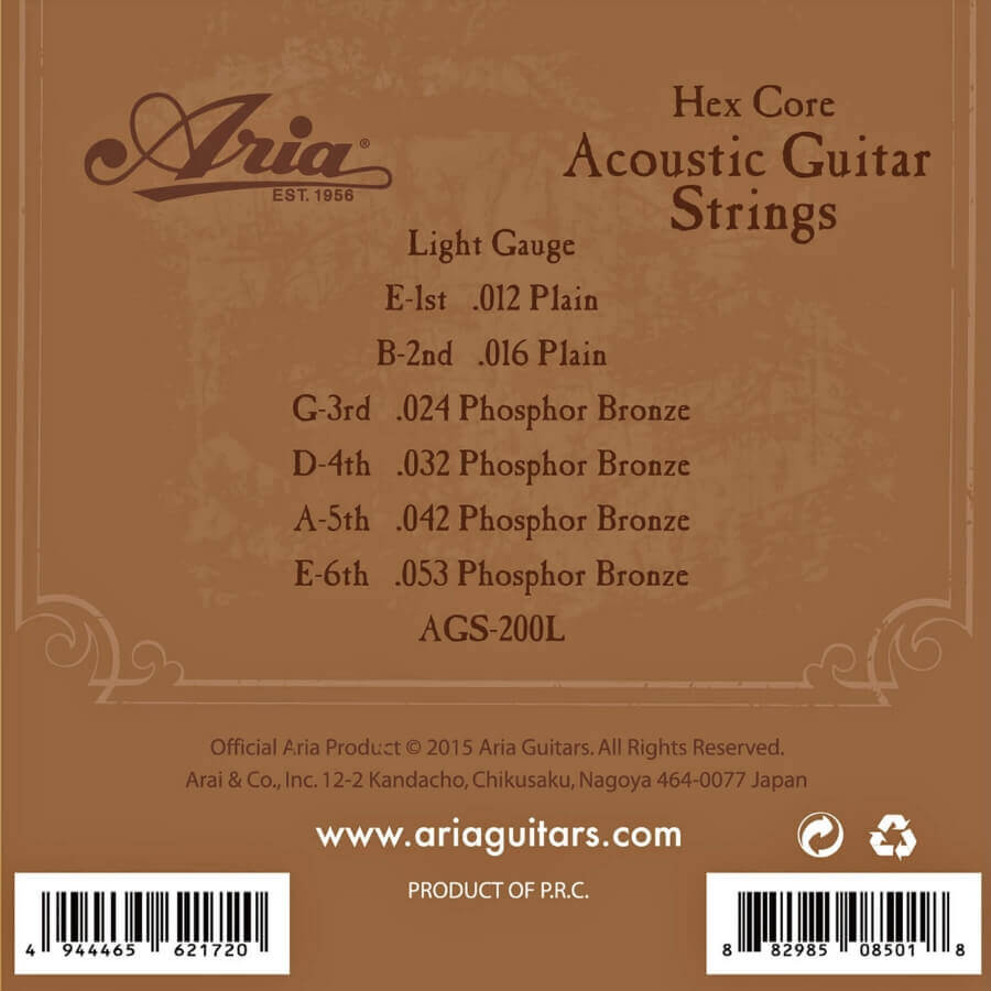 סט המיתרים Aria AGS-200L לגיטרה אקוסטית הוא סט איכותי המציע צליל עשיר, חם ומאוזן, לצד עמידות גבוהה בפני קורוזיה. המיתרים עשויים מסגסוגת פוספור ברונזה, המורכבת מנחושת, בדיל ופוספור, ומספקים צליל רך ונעים עם ויברציה חלקה. הסט מגיע בעובי Light, המתאים לרוב הגיטרות האקוסטיות ולנגנים המעדיפים תחושה רכה יותר ונגינה קלה יותר.